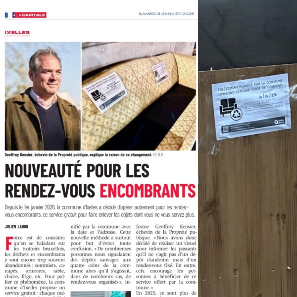 En 2025, ce sont plus de 3.500 rendez-vous encombrants qui ont été pris par les Ixelloises et les Ixellois ; soit plus de 400 tonnes collectées par les agents du service de la propreté publique.